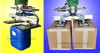 廣州粵拓宣布研制成功一款能夠同時搬運紙箱和化工原料桶的真空搬運機。