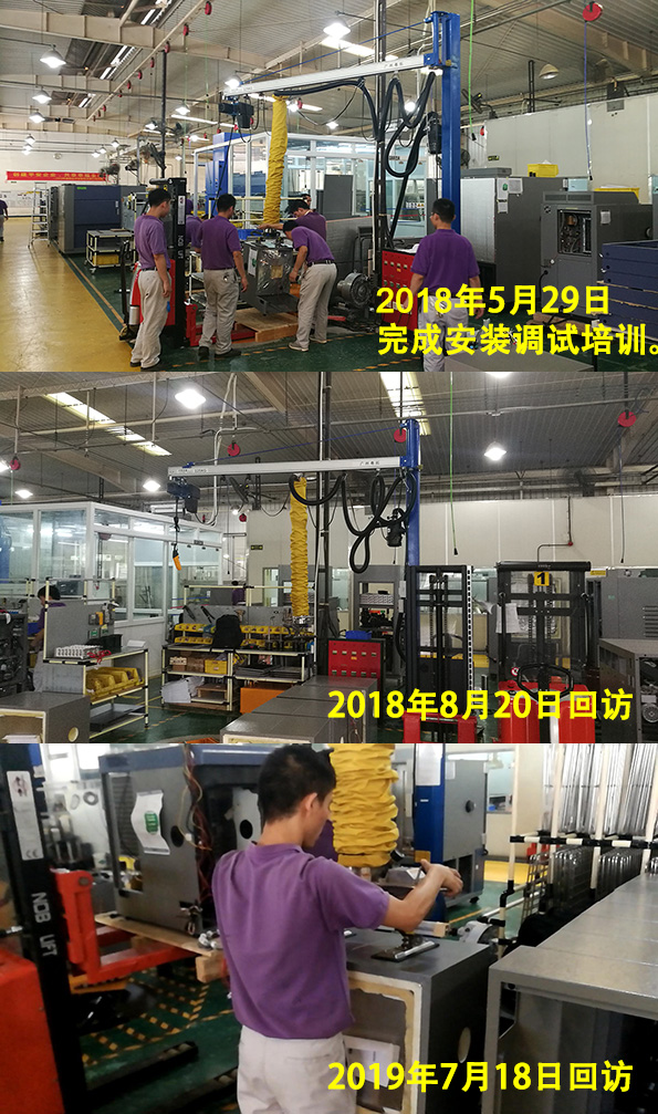 2018年5月 廣州五所(GWS)首次采購(gòu)了我們的一臺(tái)真空吸吊機(jī), 用來(lái)搬運(yùn)生產(chǎn)線上50公斤重的設(shè)備。 在成功交付使用后, 我們一直密切跟蹤設(shè)備使用狀態(tài), 認(rèn)真做好售后服務(wù)。 經(jīng)過(guò)一年的使用, 設(shè)備狀態(tài)完好率100%。 獲得了客戶(hù)高度認(rèn)可, 并由此開(kāi)啟了持續(xù)合作的新篇章。