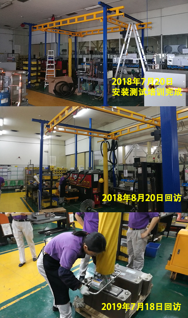 2018年5月 廣州五所(GWS)首次采購了我們的一臺真空吸吊機, 用來搬運生產線上50公斤重的設備。 在成功交付使用后, 我們一直密切跟蹤設備使用狀態(tài), 認真做好售后服務。 經過一年的使用, 設備狀態(tài)完好率100%。 獲得了客戶高度認可, 并由此開啟了持續(xù)合作的新篇章。