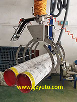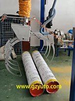 搬運(yùn)機(jī)配有專門設(shè)計(jì)的布卷夾具, 可搬運(yùn)重量90公斤、幅寬2米、 最大直徑600毫米的各類布卷、紙卷、塑料卷、金屬管等等各類圓筒狀物體。 終端夾具依靠壓縮空氣動(dòng)力, 控制閥可控制夾爪張開(kāi)和夾緊, 速度可調(diào)。